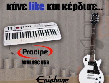 Το pCmajor διοργανώνει διαγωνισμό στο facebook και σας δίνει τη δυνατότητα να κερδίσετε ένα midi keyboard (PRODIPE – MIDI 49C USB) και μια ηλεκτρική κιθάρα (EPIPHONE – LES PAUL 100 (ALPINE WHITE) LTD).