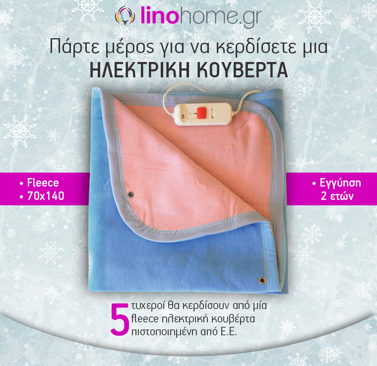 Το LinoHome.gr διοργανώνει Χριστουγεννιάτικο διαγωνισμό και δίνει τη δυνατότητα σε 5 τυχερούς να κερδίσουν από μια fleece ηλεκτρική κουβέρτα (διάσταση: 70×140).