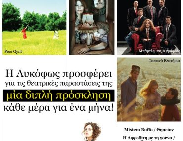 Το lykofos.org διοργανώνει διαγωνισμό και σας δίνει τη δυνατότητα να κερδίσετε μία διπλή πρόσκληση κάθε ημέρα για Θεατρική Παράσταση αξίας 30 ευρώ!