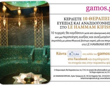 Το gamos.gr διοργανώνει διαγωνισμό και σας δίνει τη δυνατότητα να κερδίσετε 10 θεραπείες στο Le Hammam Kifissia.