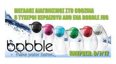 Το COOZINA διοργανώνει διαγωνισμό και δίνει τη δυνατότητα σε 6 τυχερούς να κερδίσουν από μία κανάτα φίλτρου BOBBLE JUG.