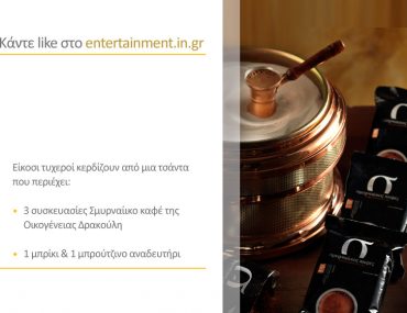 Το entertainment.in.gr δίνει την ευκαιρία σε 20 τυχερούς να κερδίσουν από μια τσάντα με 3 συσκευασίες του εκλεκτού Σμυρναίικου καφέ της Οικογένειας Δρακούλη, 1 μπρίκι και 1 μπρούτζινο αναδευτήρι, ο καθένας!