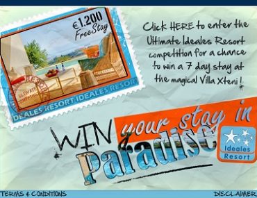 Η σελίδα του Ideales Resort διοργανώνει διαγωνισμό και σας δίνει τη δυνατότητα να κερδίσετε μια δωρεάν εβδομάδα (7 διανυκτερεύσεις) στο μαγευτικό Ideales Resort της Κεφαλονιάς, σε μια από τις πολυτελείς βίλλες (125 m2), δύο υπνοδωματίων (4ων ατόμων), με ιδιωτική Piscines Ideales. Δώρο αξίας έως 1.200€.