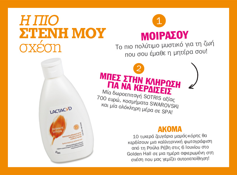 To Cosmopolitan και η Lactacyd διοργανώνουν διαγωνισμό και σας δίνουν τη δυνατότητα να κερδίσετε δωροεπιταγή SOTRIS αξίας 700,00 €, κοσμήματα SWAROVSKI, μία ολόκληρη μέρα σε SPA και καλλιτεχνική φωτογράφηση