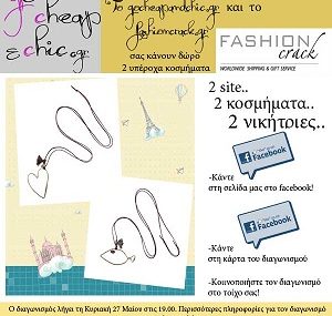 Το fashioncrack.gr και το gocheapandchic.gr διοργανώνουν Chic διαγωνισμό και σας δίνουν τη δυνατότητα να κερδίσετε δύο υπέροχα κοσμήματα.