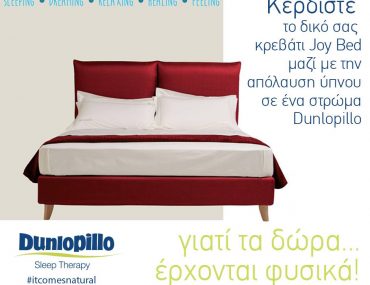 H Dunlopillo διοργανώνει διαγωνισμό και σας δίνει τη δυνατότητα να κερδίσετε ένα κρεβάτι Joy Bed μαζί με το στρώμα Dunlopillo από 100% φυσικό Talalay Latex! !