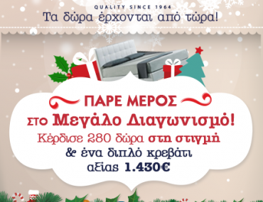 Η σελίδα GRECO STROM διοργανώνει διαγωνισμό και σας δίνει τη δυνατότητα να κερδίσετε 1 διπλό κρεβάτι 160Χ200cm Legend με στρώμα Ιnterflex συνολικής αξίας 1.432,00€ (μεγάλο δώρο). Κατά την διάρκεια του διαγωνισμού θα δοθούν διακόσια 280 δώρα. Συγκεκριμένα: 200 προστατευτικά καλύμματα 160Χ200 Teflon αξίας 106,00€, 40 Μαξιλάρια Viscoool αξίας 107€ και 40 μαξιλάρια αξίας 40,00€