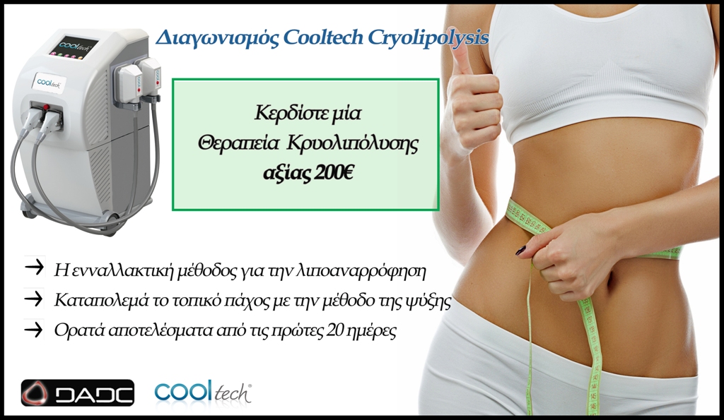 To DADC διοργανώνει διαγωνισμό και σας δίνει τη δυνατότητα να κερδίσετε μια θεραπεία κρυολιπόλυσης για την καταπολέμηση του τοπικού πάχους με τo νέο μηχάνημα κρυολιπόλυσης, αξίας 200€!