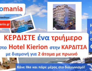 Ο οδηγός τουριστικών πακέτων Paketomania.gr σας κάνει δώρο ένα τριήμερο με πρωινό για 2 άτομα στην Καρδίτσα στο Hotel Kierion.
