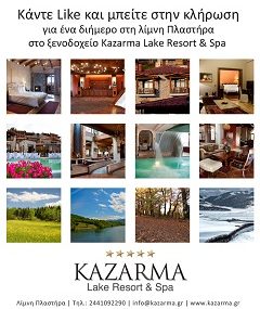 Η σελίδα της Karwood στο facebook διοργανώνει διαγωνισμό και σας δίνει τη δυνατότητα να κερδίσετε ένα σαββατοκύριακο στη λίμνη Πλαστήρα στο ξενοδοχείο Kazarma Lake Resort & Spa αξίας 288 ευρώ.