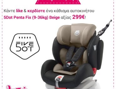 Το Λητώ διοργανώνει διαγωνισμό και σας δίνει τη δυνατότητα να κερδίσετε ένα κάθισμα αυτοκινήτου 5Dot Penta Fix (9-36kg) σε χρώμα Beige, αξίας 299€, για αξεπέραστη άνεση και ασφάλεια σε κάθε μικρή ή μεγάλη διαδρομή!