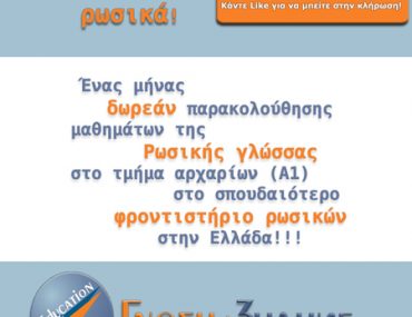 Το Διαπολιτισμικό εκπαιδευτικό κέντρο «Γνώση-Знание» διοργανώνει διαγωνισμό και σας δίνει τη δυνατότητα να κερδίσετε ένα μήνα δωρεάν παρακολούθησης μαθημάτων της Ρωσικής γλώσσας στο τμήμα Στοιχειώδους Επιπέδου (Α1).