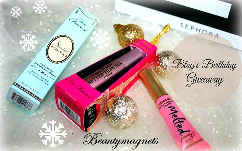 To beautymagnets.blogspot.gr διοργανώνει διαγωνισμό και σας δίνει τη δυνατότητα να κερδίσετε προϊόντα μακιγιάζ της εταιρίας Too Faced!