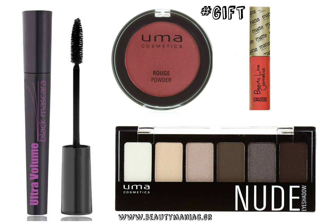 Το beautymaniac.gr διοργανώνει διαγωνισμό και σας δίνει τη δυνατότητα να κερδίσετε ένα υπέροχο σετ μακιγιάζ, που θα περιέχει: Παλέττα Uma Nude, Ρουζ Uma Beautiful Burgundy, Μάσκαρα Ultra Volume Black Beauty Line Cosmetics και το ολοκαίνουργιο Matte Lipgloss Beauty Line Cosmetics #500.