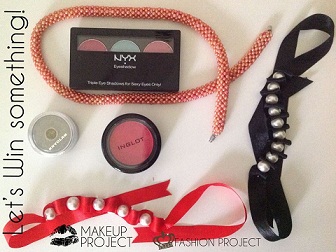 Το Makeup Project διοργανώνει διαγωνισμό και σας δίνει τη δυνατότητα να κερδίσετε προϊόντα μακιγιάζ (1 παλέτα σκιών ΝΥΧ, 1 glitter Kyrolan και μια compact σκιά Inglot) και χειροποίητα κοσμήματα (2 χειροποίητα βραχιολάκια με πέρλες και 1 χειροποίητο κολιέ).
