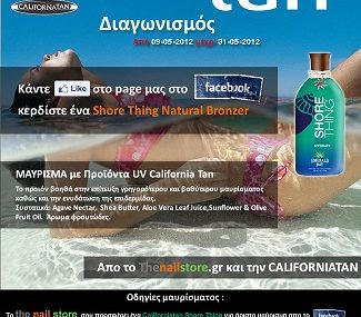 Το Thenailstore.gr διοργανώνει το διαγωνισμό “Μαυρίστε με Californiatan ” με δώρο ένα Californiatan Shore Thing για άριστο μαύρισμα.