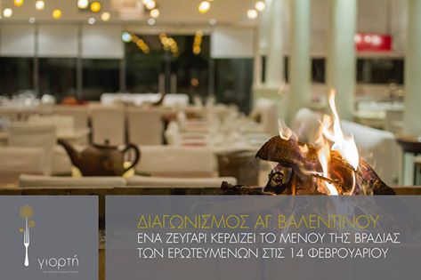 Το giorti.com.gr διοργανώνει διαγωνισμό και δίνει τη δυνατότητα σε ένα τυχερό ζευγάρι να κερδίσει ένα απολαυστικό μενού για την ημέρα των ερωτευμένων (14 Φεβρουαρίου)!