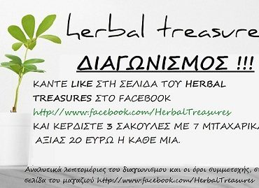 Το κατάστημα herbal treasures ξεκινά σημερα διαγωνισμο για 3 σακούλες με υπέροχα και μυρωδάτα μπαχαρικά αξίας 20 ευρώ η κάθε μία.