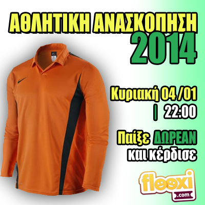 Παίξτε στο νέο παιχνίδι του flooxi.com με αθλητικές ερωτήσεις για τη χρονιά που πέρασε, απαντήστε στις περισσότερες ερωτήσεις σωστά και κερδίστε μια αυθεντική, απίστευτα κομψή μπλούζα Nike αξίας 30 ευρώ.