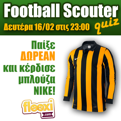 Παίξτε δωρεάν στο νέο εβδομαδιαίο quiz του flooxi με θέμα τα τελευταία ποδοσφαιρικά νέα, απαντήστε σωστά σε περισσότερες ερωτήσεις από τους αντιπάλους σας και κερδίστε μια κομψή και απίστευτα πρακτική dri-fit μπλούζα Nike!