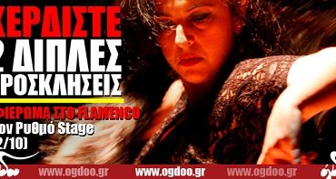 Το Ogdoo.gr εξασφάλισε για τους αναγνώστες του από δύο διπλές προσκλήσεις με κρασί ή μπύρα για το αφιέρωμα στο Flamenco από την Ισαβέλλα Γαλαίου & τον Δημήτρη Κουκουλιτάκη στο Ρυθμός Stage, στις 12 Οκτωβρίου 2012.
