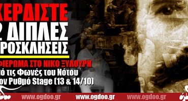 Το Ogdoo.gr εξασφάλισε για τους αναγνώστες του από δύο διπλές προσκλήσεις με κρασί ή μπύρα για το αφιέρωμα στο Νίκο Ξυλούρη από το συγκρότημα «Φωνές του Νότου» στο Ρυθμός Stage, στις 13 & 14 Οκτωβρίου 2012.