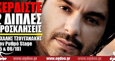 Το Ogdoo.gr εξασφάλισε για τους αναγνώστες του από δύο διπλές προσκλήσεις με κρασί ή μπύρα για τις εμφανίσεις του Μιχάλη Τζουγανάκη στο Ρυθμός Stage, στις 05 & 06 Οκτωβρίου 2012.
