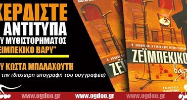 Το Ogdoo.gr εξασφάλισε για τους αναγνώστες του πέντε αντίτυπα του μυθιστορήματος «Ζεϊμπέκικο βαρύ – Η άνοδος και η πτώση ενός λαϊκού ειδώλου» του Κώστα Μπαλαχούτη, με την ιδιόχειρη υπογραφή του συγγραφέα. Το βιβλίο κυκλοφορεί από τις εκδόσεις Ηλιοτρόπιο.