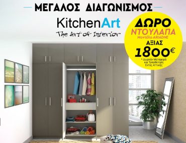 Η KitchenArt διοργανώνει διαγωνισμό και σας δίνει τη δυνατότητα να κερδίσετε μία ντουλάπα Ariadne, αξίας 1800€!