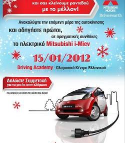 Η Mitsubishi Motors GR διοργανώνει διαγωνισμό και δίνει τη δυνατότητα σε 20 τυχερούς να κερδίσουν οδήγηση του ηλεκτρικού αυτοκινήτου I – miev της Mitsubishi Motors.
