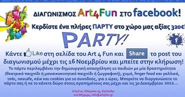 Το ART 4 FUN διοργανώνει διαγωνισμό και δίνει τη δυνατότητα σε 10 παιδιά και 10 γονείς να κερδίσουν από ένα πλήρες πάρτυ.