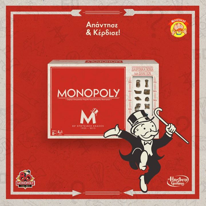 Τα Παιχνίδια Μουστάκας διοργανώνουν διαγωνισμό και σας δίνουν τη δυνατότητα να κερδίσετε 20 επετειακές Monopoly 80th!