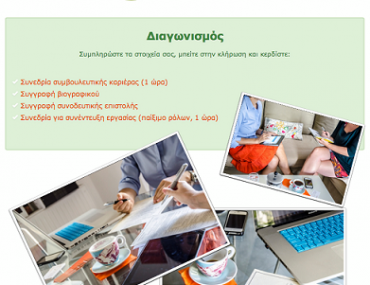 H CVexperts κληρώνει ένα πακέτο συμβουλευτικής καριέρας, το οποίο περιλαμβάνει: Συνεδρία συμβουλευτικής καριέρας (1 ώρα), συγγραφή βιογραφικού (σε όποια γλώσσα επιθυμείτε), συγγραφή συνοδευτικής επιστολής (σε όποια γλώσσα επιθυμείτε) και συνεδρία για συνέντευξη εργασίας (παίξιμο ρόλων, 1 ώρα), στην εκδήλωση που θα γίνει στο Hilton με τίτλο “Προφητεία Μάγιας: Δεν ήρθε η καταστροφή του κόσμου”.