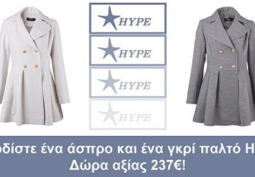 Το hype διοργανώνει διαγωνισμό και σας δίνει τη δυνατότητα να κερδίσετε 2 παλτά HYPE, δώρα αξίας 237 ευρώ.