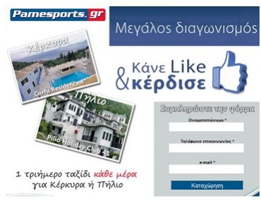 Τ0 pamesports.gr διοργανώνει διαγωνισμό και σας δίνει τη δυνατότητα να κερδίσετε 2 διανυκτερεύσεις, είτε στο ξενοδοχείο Corfu Residence στην Κέρκυρα είτε στο ξενοδοχείο Pilio Holiday Club στο Πήλιο, κάθε μέρα.