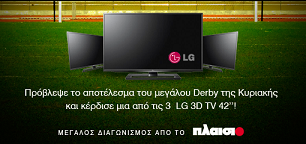 Το Πλαίσιο διοργανώνει διαγωνισμό στη σελίδα του στο facebook και σας καλεί να προβλέψετε το αποτέλεσμα του μεγάλου Derby της Κυριακής και να κέρδισετε 3 LG 42LW5400 3D LED TV 42”.