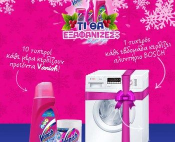 Η σελίδα Vanish Greece διοργανώνει διαγωνισμό και σας δίνει τη δυνατότητα να κερδίσετε προϊόντα Vanish κάθε μέρα και ένα πλυντήριο Bosch κάθε εβδομάδα.