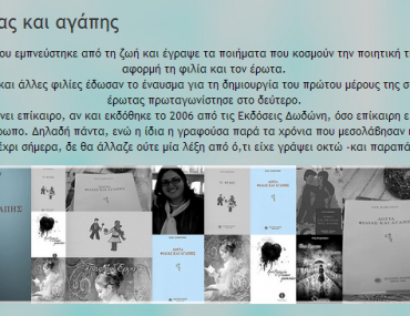 Ο koukidaki.blogspot.gr διοργανώνει διαγωνισμό και σας δίνει τη δυνατότητα να κερδίσετε Κερδίστε την ποιητική συλλογή “Λόγια φιλίας και αγάπης”! Η Εύη Καφούρου προσφέρει τρία αντίτυπα της ποιητικής της…