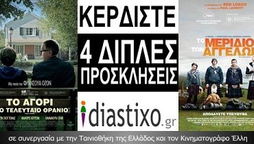 Το diastixo.gr, σε συνεργασία με την Ταινιοθήκη της Ελλάδος και τον Κινηματογράφο Έλλη, προσφέρει στους αναγνώστες του 4 διπλές προσκλήσεις, για την προβολή των ταινιών «Το αγόρι στο τελευταίο θρανίο» και «Το Μερίδιο των Αγγέλων».