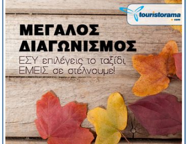 Νέος μεγάλος διαγωνισμός! Το Τουριστόραμα ευχαριστεί τους φίλους του για την προτίμησή τους και τους στέλνει διακοπές στον προορισμό που θα επιλέξουν! Πάρτε μέρος τώρα στην πρώτη κλήρωση. Θα κληρωθούν 3 ταξίδια δύο διανυκτερεύσεων στον προορισμό που έχει επιλεχθεί από τον κάθε νικητή. Το ταξίδι είναι για 2 άτομα (νικητής + 1 άτομο της επιλογής του).