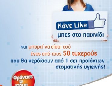 Η σελίδα ΦΡΟΝΤΙΣΕ ΤΟ ΣΤΟΜΑ ΣΟΥ διοργανώνει διαγωνισμό και σας δίνει τη δυνατότητα να κερδίσετε 50 σετ προϊόντων στοματικής υγιεινής που περιλαμβάνουν από μια οδοντόκρεμα Sensodyne, Aquafresh και Parodontax, ένα gel Biotene, οδοντόβουρτσα Sensodyne & οδοντόβουρτσα Aquafresh, μία συσκευασία Corega καθαριστικά δισκία για τεχνητές οδοντοστοιχίες και μια συσκευασία Corega στερεωτική κρέμα οδοντοστοιχιών.