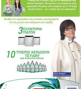 Το Fairy διοργανώνει διαγωνισμό και σας δίνει τη δυνατότητα σε 3 τυχερούς να κερδίσουν από ένα πλυντήριο πιάτων και σε 10 ακόμα να κερδίσουν προϊόντα Fairy για ένα χρόνο.