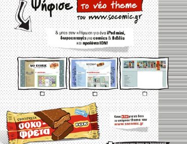 Η ION Sokofreta διοργανώνει διαγωνισμό και σας δίνει τη δυνατότητα να κερδίσετε ένα iPad & ένα κουτί προϊόντα ΙΟΝ (1ος νικητής), μία δωροεπιταγή 100 ευρώ για comics & βιβλία από τη Jemma Press & ένα κουτί προϊόντα ΙΟΝ (2ος και 302 νικητής) και προϊόντα ΙΟΝ (4ος -10ος νικητής).