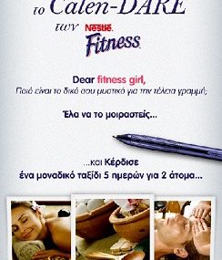 Η σελίδα των Nestlé FITNESS διοργανώνει διαγωνισμό και σας δίνει τη δυνατότητα να κερδίσετε ένα ταξίδι στην Ελλάδα 5 ημερών για 2 άτομα σε ένα πολυτελές spa με πληρωμένες θεραπείες και ένα προσωπικό πρόγραμμα γυμναστικής, σε προορισμό της επιλογής του νικητή, αξίας έως 3.000€.
