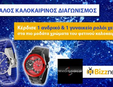 Ο Bizznews.gr διοργανώνει διαγωνισμό και σας προσφέρει σε δύο τυχερούς δύο μοναδικά καλοκαιρινά ρολόγια, ένα ανδρικό και ένα γυναικείο, στα πιο μοδάτα χρώματα του φετινού καλοκαιριού!