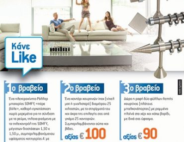 Η Modus Vivendi διοργανώνει διαγωνισμό και σας δίνει τη δυνατότητα να κερδίσετε ένα ρόλλερ ηλεκτροκίνητο μπαταρίας Somfy, ένα κοντάρι κουρτινών inox και τη ραφή δύο φύλλων λεπτής κουρτίνας.