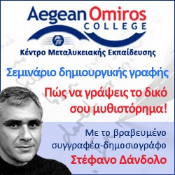 Το Aegean Omiros College διοργανώνει διαγωνισμό στο facebook και σας δίνει τη δυνατότητα να κερδίσετε 1 ΔΩΡΕΑΝ Σεμινάριο Δημιουργικής Γραφής με τον βραβευμένο συγγραφέα- δημοσιογράφο Στέφανο Δάνδολο.
