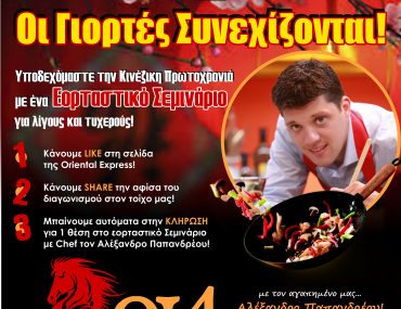 Η σελίδα Oriental Express διοργανώνει διαγωνισμό και σας δίνει τη δυνατότητα να κερδίσετε 1 θέση στο σεμινάριο μαγειρικής με τον Αλέξαδνρο Παπανδρέου!