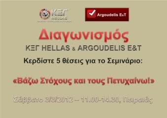 Η Κοινότητα Κέντρων Ξένων Γλωσσών KxgHellas διοργανώνει Διαγωνισμό ΑΠΟΚΛΕΙΣΤΙΚΑ ΓΙΑ ΤΑ ΜΕΛΗ ΤΗΣ για τον μήνα Φεβρουάριο σε συνεργασία με την Argoudelis E&T όπου 5 τυχεροί θα κερδίσουν από μία συμμετοχή για το Σεμινάριο ” Βάζω στόχους και τους πετυχαίνω” που διοργανώνει το Σάββατο 3/3/2012 (11.00-14.30) η Argoudelis E&T, στην αίθουσα σεμιναρίων της στον Πειραιά, οδός Χορμοβίτου 242.