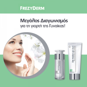 Το babyspace.gr διοργανώνει διαγωνισμό με αφορμή τη γιορτή της γυναίκας και σας κάνει δώρο ένα σετ προϊόντων περιποίησης προσώπου FREZYDERM αξίας 50€ που θα περιέχει: 1 REVITALIZING SERUM: Ορός με αντιγηραντική και αναζωογονητική δράση και 1 DE-MAKE UP 4 in 1: Απαλό γαλάκτωμα καθαρισμού για το πρόσωπο, το λαιμό και τα μάτια.